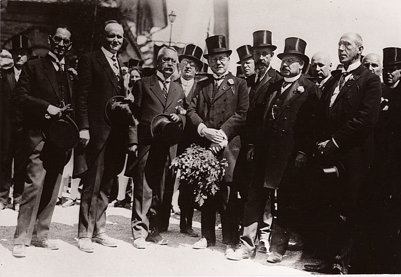Einweihung der Eisenbahn in Waldenbuch am 22.06.1928 auf dem Postplatz. Dritter von links Bürgermeister Gottlob Fischer.