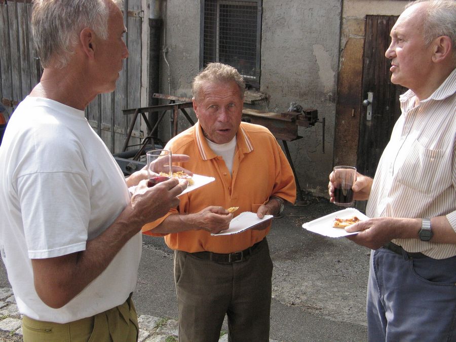 Geschichte bewahren: Backhaus-Besitzer Wilhelm Langohr (Mitte) mit den beiden Initiatoren des Sanierungs-Projektes, Li. Rudi Crazzolare, re. Christian Eng