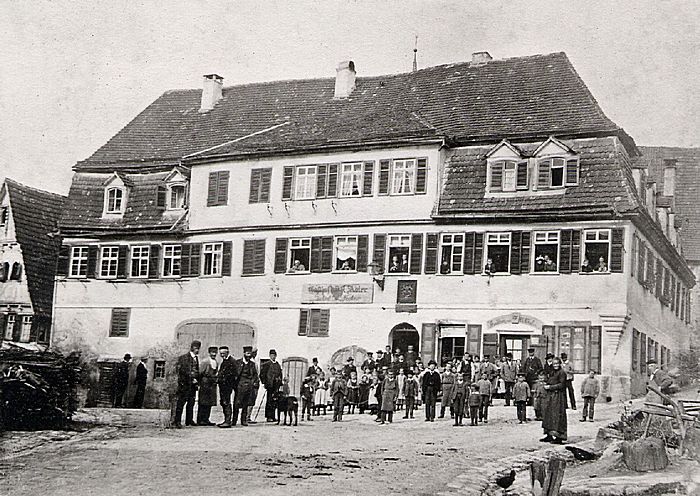 mit Kolonialwaren Wilhelm Binder. Hinter dem großen Tor, links, waren Pferde- bzw. Kutschenställe.