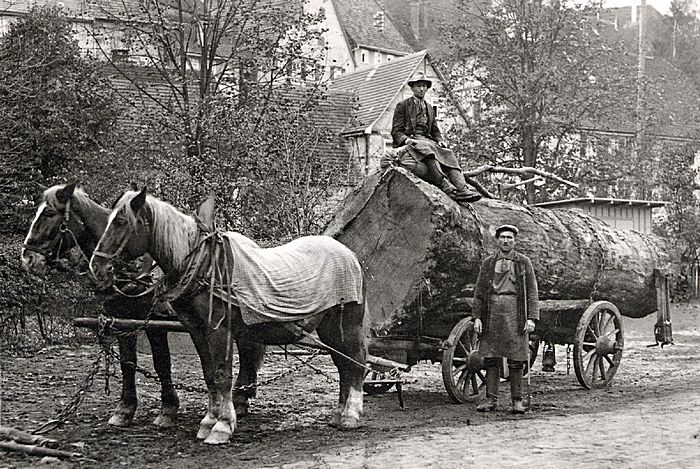 Erstaunlich schwere Last für ein Pferdefuhrwerk!