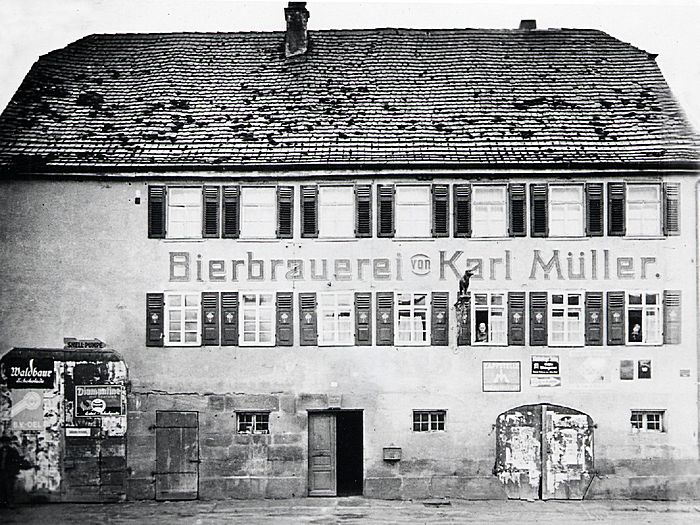 in der Grabenstrasse. Links Scheune und Stall, in der Mitte der Eingang zur Wirtschaft und rechts der Gaststall. Heute Gasthaus Lamm.