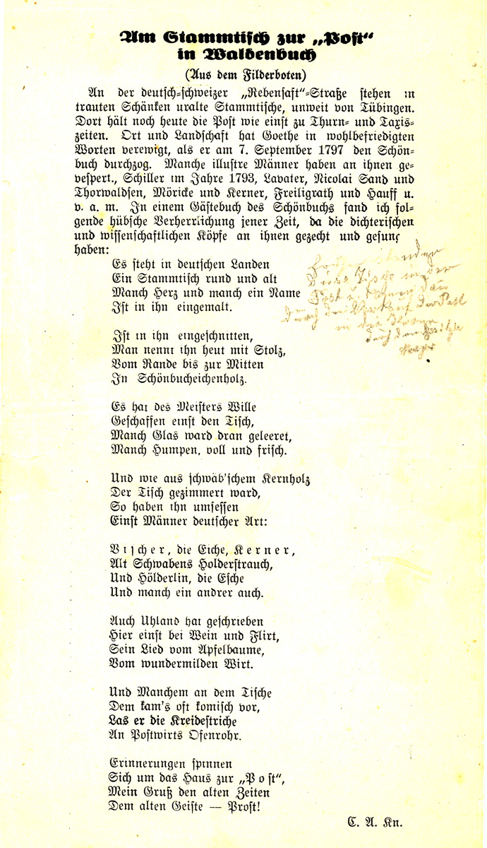 Schiller, Goethe, Uhland – alle waren zu Gast in der Post