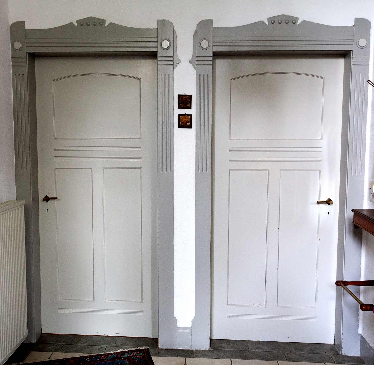 - Eingangsveranda mit ursprünglicher Wandbemalung, die später überstrichen wurde