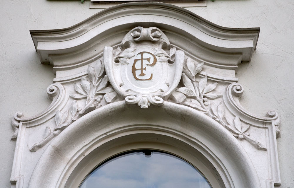 - Initiale der Vornamen des Bauherrn (P)aul und seiner Frau (E)lise auf der Ostseite