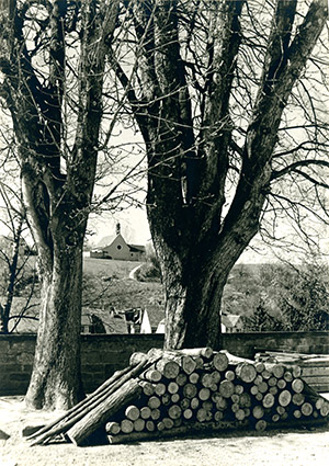 ca, 1970. Blick vom Schlosshof auf den Friedhof.